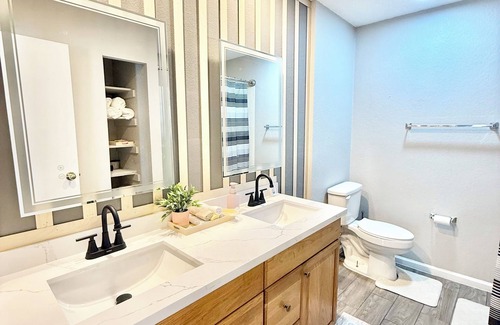Escape to a serene 3-bedroom house in Lewisville. Unwind in the pleasant bedrooms featuring a king, queen, and twin bed. Relax in the cool living room with a comfy futon. Enjoy the convenience of amenities like heating, WiFi, and a washing machine. Make your holiday one for the books with a stay at our place.