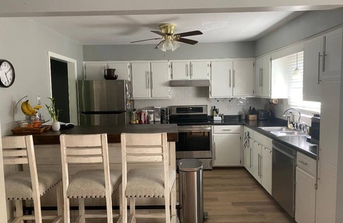 The main floor consists of 3 bedrooms, 2 full baths, comfortable living room with smart T.V. (set up for you to use your own services), full kitchen with common appliances and deck with grill. Parking is available on the street.