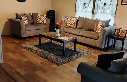 This 3-bedroom house in Sandersville is perfect for your escape to relaxation. With 3 queen beds, AC, WiFi, and a cozy living room with a sofa bed, guests will find this property to be a brilliant retreat. Enjoy the peaceful surroundings and modern amenities for a phenomenal stay. Old neighborhood established in the late 1930's . It's quite no loud music,crime, never judge a book by its cover.. has a fire pit, spacious front and backyard gated with fence u may see the deers eating from the gum tree it's just a peaceful home come and relax. Neighborhood sits in time of the late 1930's homes have not changed their my home was built in 2022 come and relax and enjoy your stay.
