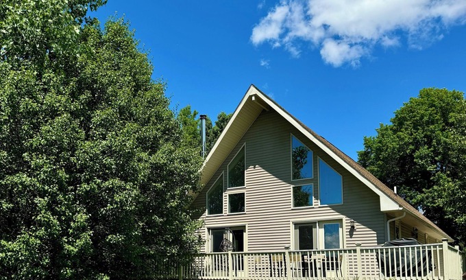 This memorable 3-bedroom house is the perfect home base for your trip to Athens, New York in the Sleepy Hollow Lake community. With a charming ambience, this delightful property provides a comfortable stay for up to 8 guests. The bedrooms feature a wide variety of sleeping arrangements including a king, queen, full, and twin beds. Enjoy the hot tub after a long day of hiking or all of the activities Sleepy Hollow Lake has to offer. A bit chilly out? Gather around either the outdoor firepit or the indoor wood burning stove located in the open concept living area all while either listening to records or enjoying a movie. Got some work to do? Use the dedicate workspace in the primary bedroom with high-speed internet. Experience the magic of Sleepy Hollow Lake (and all of its amenities including tennis, pickleball, swimming, playgrounds and more...) in our beautiful A-frame home.
