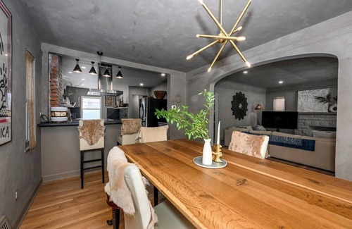 This 3-bedroom house is perfect for your escape to Cleveland Heights. Nestled in a tranquil neighborhood, this brilliant property offers a truly enchanting stay for guests. Each bedroom features a comfortable queen bed, ensuring a restful night's sleep. The bathrooms are equipped with all the necessary amenities, including a hair dryer, shower, and bathtub. With heating, AC, a washing machine, WiFi, and an iron, you'll have everything you need for a convenient and enjoyable stay. Whether you're exploring the vibrant city or simply relaxing in the cozy living spaces, you'll love your time in Cleveland Heights at our charming house. Newly remodeled with top of the line appliances and finishes, stay in an architectural gem and spur your creativity!