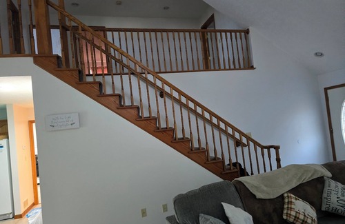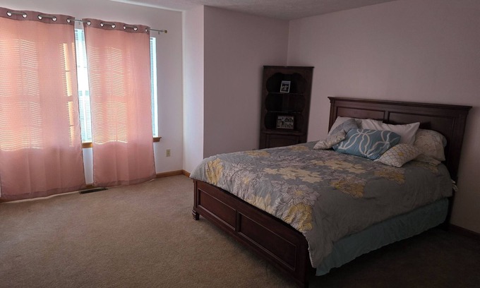 This 4-bedroom house is perfect for your escape to Hazleton. Nestled in a peaceful neighborhood, this adorable property features a King bed, queen bed, a full bed, and a twin beda and two additional pull out full size chair beds, to accommodate all guests. With amenities like WiFi, a fireplace, and a washing machine and dryer, you'll have everything you need for a tranquil stay. A full kitchen equipmed with cooking needs. The 2.5 bathrooms come equipped with a hair dryer and a shower/ bathtub for added convenience. Kickback, relax, and enjoy everything Hazleton and our house has to offer. 2.0 miles from pool and club house. Easy access as it is 2.0 miles from entrance for easy entrance and exit.