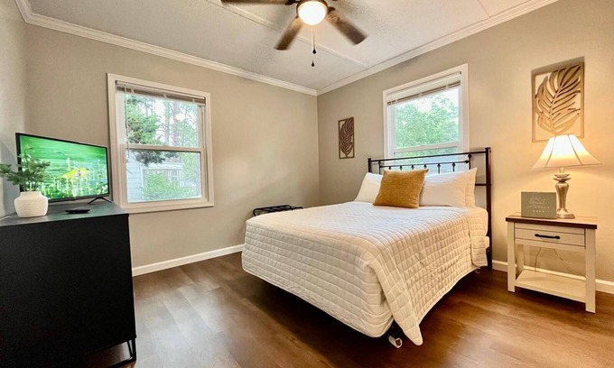 This Waycross house boasts 3 inviting bedrooms, including 1 queen bed and 2 full beds. The serene atmosphere of this property is perfect for guests looking to unwind and relax. With amenities like heating, A/C, Wi-Fi, and washing and drying machine, your stay will be nothing short of excellent.