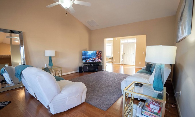 This Anderson house boasts 3 inviting bedrooms with a king, queen, and full bed. The 2 bathrooms come equipped with a hair dryer and bathtub. Guests can enjoy AC, a washing machine, WiFi, heating, and an iron during their stay. Experience a fabulous retreat in this superb property. Enjoy all that Anderson has to offer when you stay at our place.
