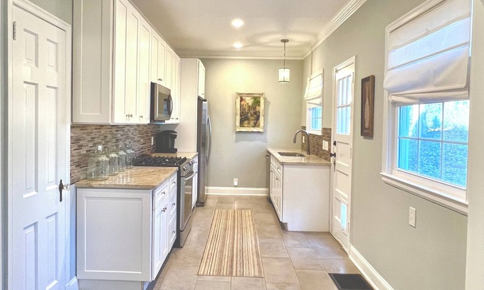 Discover the beauty of East Point from this delightful 3-bedroom house. Wake up to the peaceful ambiance of this amazing property, featuring 1 king bed and 2 queen beds in the cozy bedrooms. Take advantage of the bathtub and shower in the 2 bathrooms, and enjoy the convenience of amenities like AC, heating, a washing machine, iron, hair dryer, and WiFi. Whether you're exploring the city or relaxing at home, our house is the perfect retreat for guests. Enjoy your time in East Point at our charming house.