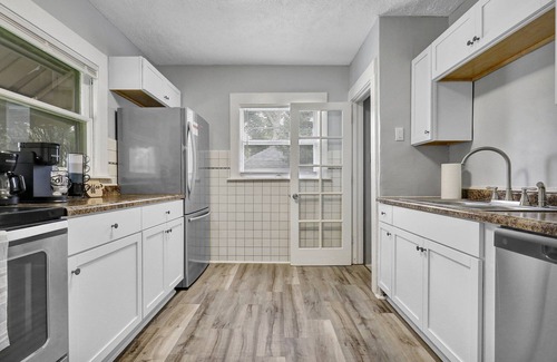Your family will be close to everything when you stay at this centrally-located home in Lansing. Our house has been recently renovated. After walking into the house through the rear door from the private driveway, you will enter into a well-stocked kitchen. From the kitchen the hallway will lead you to the three bedrooms, bathroom, living room and the dining area in the front of the house. Bedroom 2 has a Single bunk over a full bed. Bedroom 3 has a two twin bed bunk. All of the beds are furnished with cooling memory foam mattresses and blackout curtains.