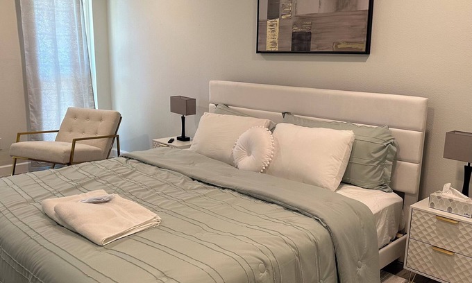 This 3-bedroom house in Tampa is perfect for your escape to relaxation. With a brilliant king bed, enjoyable queen bed, and charming full bed, guests will feel right at home. The property boasts AC, a washing machine, WiFi, iron, heating, and a hair dryer for convenience. The 2 bathrooms feature a bathtub and hair dryer. It's easy to see why you'll be able to unwind at our place.