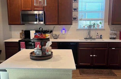 5 min away from Circuit of the Americas! Nestled in Del Valle, this delightful house offers 3 bedrooms - 1 king bed and 2 queen beds. With 3 bathrooms equipped with a bathtub, bidet, and shower, guests can relax in style. The additional living room space even includes a cozy crib for little ones. Enjoy the fabulous amenities like a hair dryer, AC, and WiFi during your stay. Come experience the beauty of this awesome property - we look forward to welcoming you to our place.