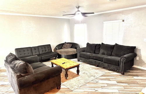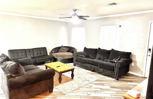 Escape to this adorable house in picturesque Borger. With 3 bedrooms including 2 queen beds and 1 twin bed, a cozy living room with a futon, and a bathroom with a shower, this place is perfect for a family or group of friends looking for a quaint retreat. Enjoy the convenience of amenities like AC, a washing machine, iron, heating, and WiFi during your stay. We think our place will help you experience everything Borger has to offer.