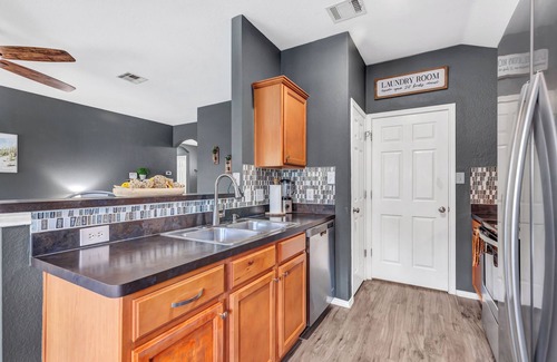 Enjoy a relaxing stay in our cozy home featuring a private pool, a fully equipped kitchen, unwind in the serene outdoor area at the pool and comfy patio furniture, work area with an adjustable desk, and an amazing massage chair for ultimate relaxation. Plus workout equipment in the spacious garage.