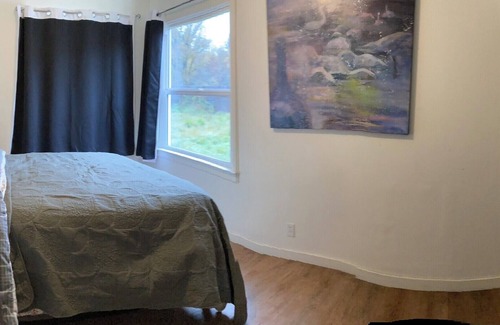 Conveniently located two blocks west of Hwy 101. Private and fully fenced 1/2 acre yard. Lots of free parking. Comfy beds with nice linens. Fully stocked kitchen with coffee, tea, and spices. Laundry on site. Dedicated office space and reliable Wi-Fi. Sauna and cold plunge to relax in. Pet and Kid friendly. Large TV and board games as well as craft supplies.