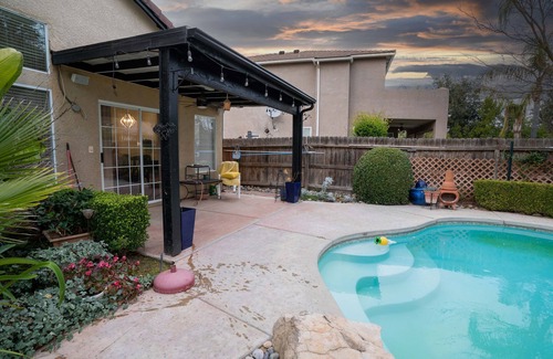Your home away from home in Clovis with 3 bedrooms and a pool. This delightful house features 1 king bed, 1 queen bed, and 1 twin bed, perfect for families or groups of friends. With amenities like AC, WiFi, and a washing machine, guests can relax and unwind after a day of exploring. The 2 bathrooms offer a bathtub and shower for added convenience. We think our place will help you experience everything Clovis has to offer.