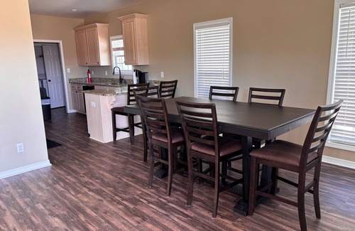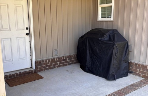 Quite neighborhood, prefect for taking an afternoon walk. Per friendly home. Amenities provided. Out door fans on front porch. Short distance from shopping and restaurants. Home offer outdoor gas grill.Garage area.Kitchen is stocked with pots and pans and a dishwasher. Washer and dryer also in the home.