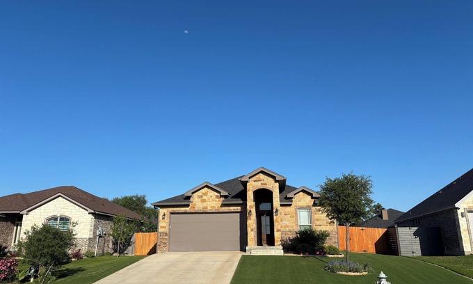 This welcoming house in Temple offers a serene escape for guests, with 2 queen beds and 1 double bed set in 3 cozy bedrooms. The master bath is equipped with a hair dryer, both bathrooms have extra towels for your convenience. Relax in the pleasant atmosphere of this home, complete with WiFi, heating, AC, equipped kitchen, and a washer/dryer. The garage can be opened from inside the house if you prefer to garage park your vehicle. The neighborhood is quiet and has a playground about 0.5 miles in the back. Enjoy all that Temple has to offer when you stay at our place.