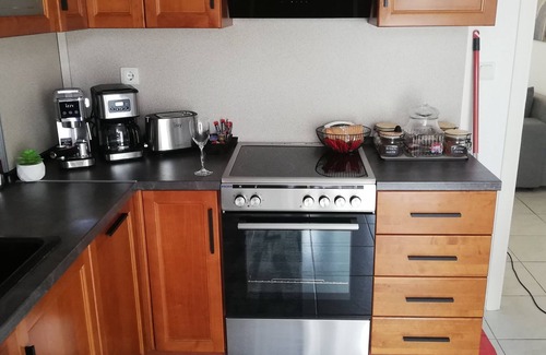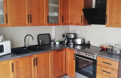Veria is waiting for you at this 3-bedroom house. Step into a wonderful space with 2 full beds, a cozy living room with a sofa bed, and a serene bathroom with a shower and hair dryer. Enjoy the convenience of AC, a washing machine, WiFi, heating, and more. Whether you're exploring the city or relaxing indoors, this beautiful property is the perfect retreat for guests. We hope you'll enjoy your stay at our house.
