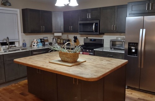 Our Clearview home is less than 2 years old and has lots of room and a great fenced back yard for kids and pets. Great WIFI for staying connected and a fully equipped kitchen featuring a giant island.