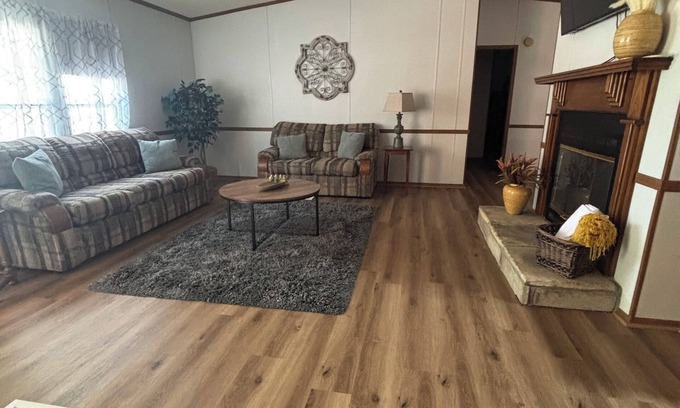 This newly renovated double-wide mobile home is the perfect home base for your trip to Bryant. With 3 bedrooms including 2 queen beds, 1 twin bed, and 1 full bed and 2 full baths, this cozy home offers a very comfortable atmosphere for guests. Enjoy the convenience of a fully furnished home, including kitchen, all linens and amenities and a fenced back yard for pets. Whether you're relaxing in the AC or exploring the area, our place will help you experience everything Bryant has to offer.