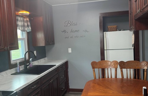 Enjoy a peaceful stay at this 3-bedroom house in Clinton. This gorgeous property features 1 queen bed, 1 full bed, and 1 twin trundle bed perfect for a family or group of friends. With amenities like heating, WiFi, and AC, guests will feel right at home. The kitchen is supplied with glasses, plates, bowls, silverware, some pots and pans, baking dishes, utensils, keurig, coffee cups and much more. The bathroom includes shampoo, conditioner, body wash, a hair dryer and shower for convenience. Plus, there's a cozy living room for extra sleeping space. There is a fenced in back yard for pets to roam. Also a fire pit for late night bonfires and cooking s’mores!! Book now and enjoy everything this house has to offer.