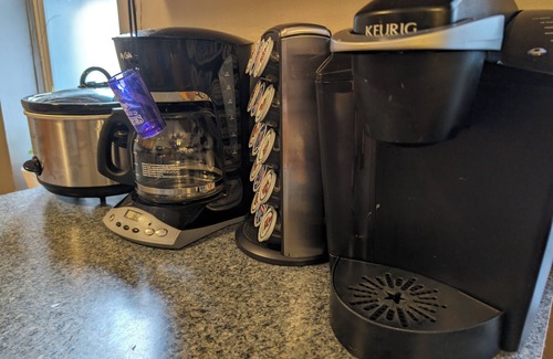 The elegant kitchen is fully-equipped featuring all new appliances. We also provide complimentary decaf, regular coffee, and assorted teas to jumpstart your mornings.