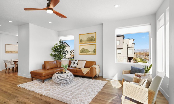 Welcome to your luxurious Salem retreat! This newly built townhome offers breathtaking mountain views, two private rooftop decks, and a spacious, open floor plan. Designed with high-end finishes like quartz countertops, wood floors, and upscale lighting, the home is filled with natural light through expansive windows. With a two-car garage equipped with an EV charger and a prime location near the freeway, this townhome combines tranquility with modern convenience for the perfect getaway.