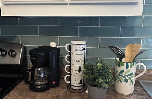 The fully stocked kitchen, complete with a stove, oven, refrigerator, grill, microwave, dishwasher, coffee maker, kettle, and toaster, allows you to prepare delicious meals. Savor your culinary creations at the dining table, surrounded by the comforts of home. When it's time to relax, retreat to the cozy living room or take advantage of the on-site parking.