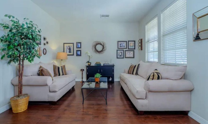 Come experience what the beautiful state of Arizona has to offer . Year round sunny weather, beautiful sunsets and Mountain Views. Stay at this spacious 4 bedroom 2 1/2 bath vacation home in the beautiful northwest valley. This home offers a fully equipped kitchen for preparing meals, a private backyard and grill, and large bedrooms for relaxation.