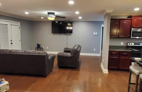 Located in Vinemont, only 10 minutes to the heart of downtown Cullman. This beautiful house with 3 bedrooms (1 king bed, 2 queen bed) is a dream. With WiFi, a washing machine, AC, heating, and an iron, guests will have everything they need for a wonderful stay. The 2 bathrooms are clean and well-maintained, ensuring a pleasant experience for all. It's easy to see why you'll be able to unwind at our place.