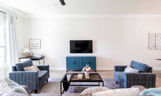 Best-rates for the Charming 3Bed 2Bath Oasis starts from $263 per night with includes Child Friendly, Kitchen, Air Conditioner, Parking, Pet Friendly, TV, Security/Safety, Internet, Laundry with all other amenities. Perfect for Weddings is committed to ensuring every guest experiences a comfortable and extraordinary stay, whether planning a romantic getaway, a honeymoon, a pet-friendly stay, or celebrating with the entire wedding party.
