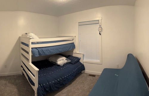 Located in Duchesne, enjoy what this 3-bedroom house has to offer. This superb property boasts a serene atmosphere that will make guests feel right at home. With 1 king bed, 1 full bed, 1 bunk bed, and 1 futon, there's plenty of space for everyone to unwind. The house features modern amenities like heating, a hair dryer, a washing machine, WiFi, and AC. The 2 bathrooms are equipped with showers and hair dryers.