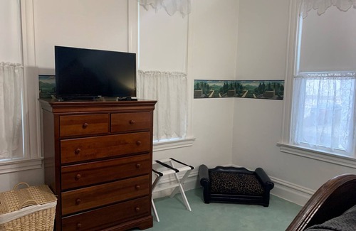 The Peacock is an old home, over 100 years old. There are more than normal steps to the second floor, and there is also an original claw-foot tub in the second-floor bath. The house has most of the amenities of a modern home and is quite perfect for groups to gather. It is located one block from Main Street and the City Park, close to downtown and riverfront events. It is a very safe neighborhood. The corner lot has a backyard and ample on-street parking.