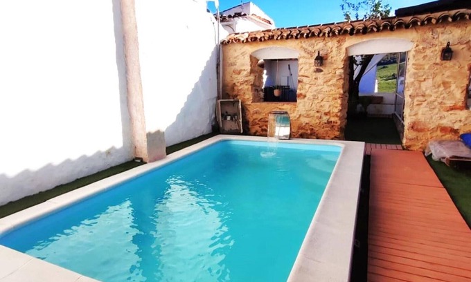 Charming house, fully furnished with capacity for up to 12 people and with a shared pool with another holiday home in a unique space to [hidden] house is divided into 2 floors. The ground floor has a large living room with fireplace and dining area. Fully equipped kitchen with everything you need for your stay.