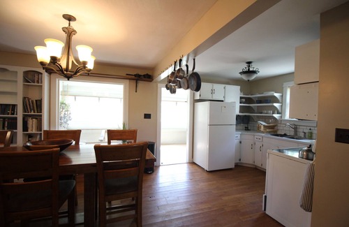 Your stay at this farmhouse offers an array of amenities designed for comfort and convenience. Enjoy the open floor plan that allows natural light to fill the space, complemented by custom shelving and furniture crafted by the owner. The well-appointed kitchen is perfect for preparing meals with loved ones, while the lush yard showcases cultivated fruit bushes and trees, allowing you to savor fresh seasonal delights. With ample indoor and outdoor spaces, the property is ideal for hosting intimate gatherings or larger wedding receptions, providing the perfect blend of charm and functionality.