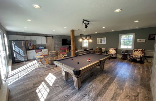 Welcome to this charming cottage at Clear Lake. This peaceful retreat offers 5 cozy bedrooms, including 2 queen beds, 1 full bed, 2 twin beds, and sofa beds. With 3 bathrooms featuring refreshing showers, guests will feel right at home. The sixth office space in the recreation barn with a sofa bed provides extra comfort for those who need to catch up on work or relax. Our place will help you feel at home while you're relaxing and enjoying beautiful Clear Lake. The expansive and private yards offer many places to relax. The East Shore location offers a great dock and beach to enjoy the water. Private patio with grill and smoker is the perfect place for a barbeque. Enjoy a bonfire under the stars. Watch movies and enjoy pool, ping pong and darts in the the expansive recreation barn. Enjoy a quick work out in the gym. Too many amenities to list. Comfort, convenience and privacy all within renovated historic property.
