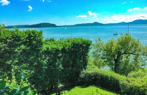 Approximately 5 km south of Laveno is the tastefully furnished 4-room house "Villa Mavica" in a quiet and sunny location directly on the lake. The living area of approx. 220 m² spreads over 2 floors and is distributed among u. a. to a living / dining room, an open kitchen, 3 bedrooms and 3 bathrooms. Thus, the charming house offers enough space for up to 6 people. From the outdoor area, the living / dining room and the bedrooms you can enjoy a magical view of the lake. Modern comforts such as satellite TV, free wireless Internet access, a dishwasher and washing machine are extremely helpful in making your stay as comfortable as possible. The balcony, the terrace and the approximately 120 m² private garden invite you to linger. Enjoying the romantic sunset over the lake during a barbecue is a memorable experience for everyone involved. If you do not just want to relax in a deck chair but also like to swim, you can reach the lake over a few steps. The small town of Reno di Leggiuno with its idyllic harbor, the beach and a restaurant is about 1 km away. If you would like to be pampered with culinary delights at home, a chef is also available on request. If you are a culture lover, there are plenty of new things to discover nearby in Varese with the "Eremo di Santa Catarina del Sasso Ballaro" or the "Villa Panza", and the Lombard metropolis of Milan can also be reached in about one hour by train from Laveno reachable. A boat mooring can be rented on request in about 200 meters from the harbor. Within the closed property there are two parking spaces available. House layout: Ground floor: living / dining room with satellite TV, beautiful lake view and exit to the garden Spacious, well equipped open kitchen with dishwasher, 4-burner stove, and oven Friendly bathroom with shower, bidet and window Small laundry room with washing machine Approx , 120 m² private garden with barbecue and access to the lake and beautiful view of the lake and the opposite shore First floor: entrance hallway with large closet bedroom with double bed (mattress: 1.70 mx 1.95 m), beautiful view of the lake and Exit to the balcony 2. Bedroom with double bed (mattress: 1.60 mx 1.90 m), satellite TV, beautiful view of the lake and exit to the balcony 3. Bedroom with 2 single beds, which can also be placed side by side (mattresses each 0.80 mx 1.90 m), beautiful view of the lake and exit to the balcony 2nd friendly bathroom with bathtub (shower facility), bidet and window 3. Friendly Bathroom with shower, bidet and window ca. 20 m² terrace in front of the house with a view of the countryside. 22 m² large covered balcony with a beautiful view of the lake and the opposite shore