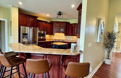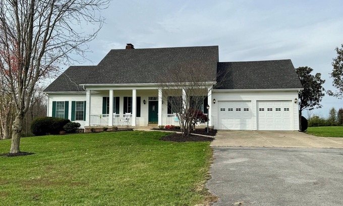 Enjoy the sounds of nature when you stay in this large family/multi family house settled on 40 acres with a fishing pond. Heart of bourbon and horse country. Just 30 mins outside downtown louisville and Churchill Downs. Several living spaces to create memories. Garage has been turned into a fun game room. Relax on the back screened porch, or the large outdoor porch, complete with outdoor dining, hot tub, and fire pit. Enjoy hiking the property, fishing in the lake, or simply enjoying the sights and sounds of nature.