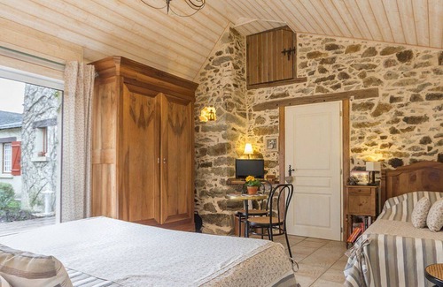 Bedroom located upstairs with air conditioning (3 twin beds 90x200), private shower room/wc. Additional equipment: Wifi access, TV, baby equipment, bicycles, hair dryer. Kitchen area and tea room available.