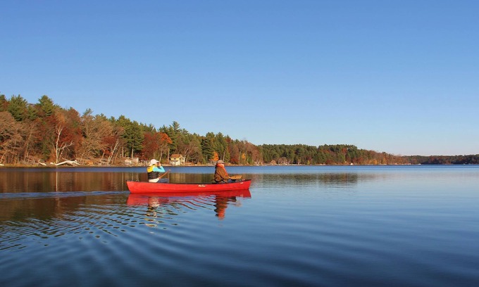 Cottage amenities include: bathroom with full tub/shower, full kitchen with microwave, fridge, stove/oven, coffee maker and all essentials for cooking. There is a queen size bed, full size lower bunk bed with a twin bed on top and queen size sofa sleeper. Maximum occupancy is 6 people. Free WIFI available. It also comes with a TV, DVD player, DVD movies, CD player, washer and dryer (no charge), bed linens and towels. Also includes use of charcoal grill, fire pit with firewood for sale on site, canoe, kayak and stand up paddle board.