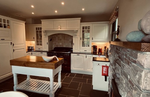 The rural-style kitchen offers all modern amenities, such as an AGA gas-electric oven, dishwasher, fridge and freezer, microwave, electric kettle, toaster and coffee maker.