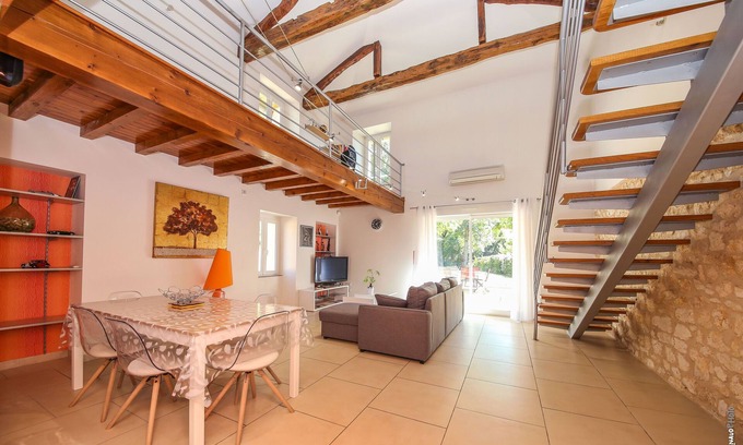The garden is private, raised and fenced. Children can play safely. A swing will be at your disposal. You will also find a barbecue with vine stumps for beautiful grills.
