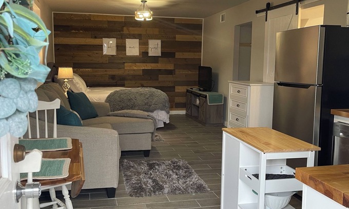 Charming and immaculate 1-bedroom Suite/Apartment in Elizabethton is located in Elizabethton. Charming and immaculate 1-bedroom Suite/Apartment in Elizabethton provides accommodation, featuring Security/Safety, Bedding/Linens, Wellness Facilities, among other amenities. This Apartment features Security/Safety, Bedding/Linens, Wellness Facilities, to make your stay a comfortable one.