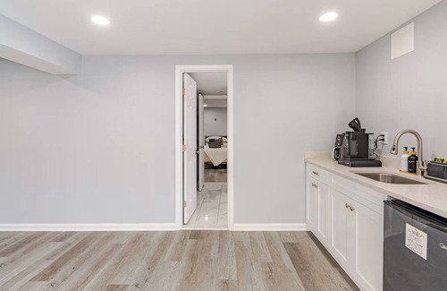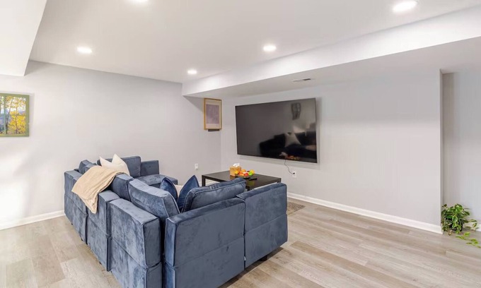 Experience Silver Spring like a local in this entire basement open-plan apartment with its own entrance. The cozy space features a comfortable king bed, 85-inch smart TV, kitchen, bathroom and living area.