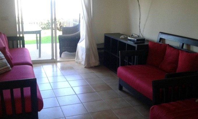 charme place to live with 24 hours Security and sweaming pool and baby torys and green spaces . beautiful sleeping rooms with charm bed and clean hous also the room of children wide and clean and living room is too big with a big television and cable canal large space and nice view to the sea, people here are friendly and under your service also Security guys are verry trustfull , you must visit us