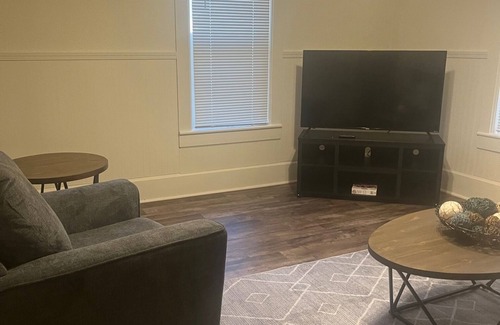 Full kitchen for cooking, spacious living room with comfy furniture for relaxing. 1 bedroom has a queen bed and the other a twin. Air mattress available for an extra guest. Both bedrooms have luxury linens and TVs. 5g fiber optic wifi.