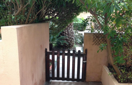 This apartment classified 4 stars (tourist office) on the ground floor with private terraces, surrounded by greenery, overlooking a beautiful garden, is in the private residence near the palm trees, 100m from the water, quiet, in 200m from the village and all amenities, consisting of a master bedroom (160 bed) with bathroom bathtub, TV, + 1 bedroom 2 twin beds 90 + water point, 2wc, living room with corner seat, flat screen, kitchen, plate vitro, oven, microwave, dishwasher miele, coffee maker nespresso, washing and drying machine, garden furniture, air conditioning ......... reversible.