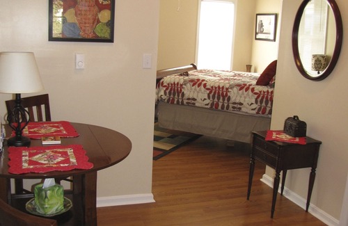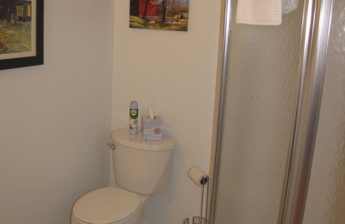 Private entrance. 2nd floor one bedroom efficiency, with queen sleigh bed, two easy chairs. Bathroom with shower. Fully equipped eat-in kitchen. All linens and towels supplied. TV and WiFi. Enjoy your vacation in this lovely apartment in downtown Gettysburg. With ample parking in the back, once you arrive you will not need to drive while you are here! You can walk easily to shops and restaurants, and areas of the Battlefield and many historic sights.
