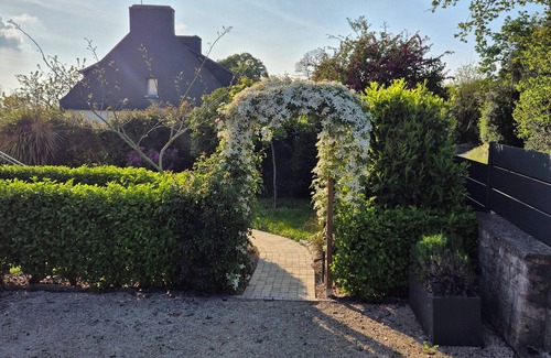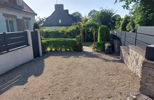 Ideally located, close to shops (restaurants, creperies, biscuit, pharmacy, supermarket, bakery, butcher, caterer), the beach and the golf of Cornwall. Private garden.