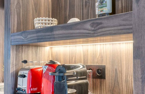 After exploring Ghent's charm, unwind in the living area, ideal for chilling out or transforming the sumptuous sofa bed into an additional sleeping space at night. Adjacent to the living space, the open kitchen awaits, seamlessly adjoining the living room and equipped with modern amenities, including a toaster, kettle, dishwasher, microwave/oven, along with a complete set of dishes and silverware, for your culinary endeavors.