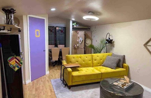 Escape to this animal friendly fantastic barn retreat in Denton. Unwind in the cozy 2 bedroom space featuring a king bed and a sofa bed. Enjoy the convenience of amenities like WiFi, AC, and a fitness room. With bathrooms and laundry, Guests can relax and recharge during their stay. Make your holiday one for the books with a stay at our place. Please be aware that restroom is located up stairs