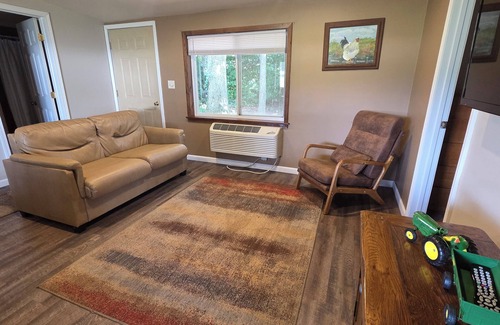 Escape to our charming cottage in the country, a unique, relaxing retreat with playful barnyard-inspired décor. This 2-bedroom cottage, nestled amid the serene countryside in Leonidas, is perfect for your escape. The cozy living room with a sofa bed offers extra space for guests. Enjoy a peaceful stay with a full bed and a daybed with trundle in the bedrooms. No need to worry about the heat, as AC is provided. The property is tucked along the peaceful St. Joseph river, where you can follow the trail and enjoy a picnic right on the beach. We'll be available to answer any questions while you stay at our place.