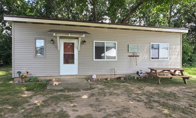 Escape to our charming cottage in the country, a unique, relaxing retreat with playful barnyard-inspired décor. This 2-bedroom cottage, nestled amid the serene countryside in Leonidas, is perfect for your escape. The cozy living room with a sofa bed offers extra space for guests. Enjoy a peaceful stay with a full bed and a daybed with trundle in the bedrooms. No need to worry about the heat, as AC is provided. The property is tucked along the peaceful St. Joseph river, where you can follow the trail and enjoy a picnic right on the beach. We'll be available to answer any questions while you stay at our place.